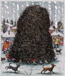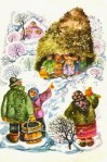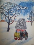 The hat he wears is a traditional shepherd’s Astrakhan cap of lambswool, and it is a magic hat, because it can change size, growing big enough to keep friends warm when walking home from school, and even large enough to cover the whole village.