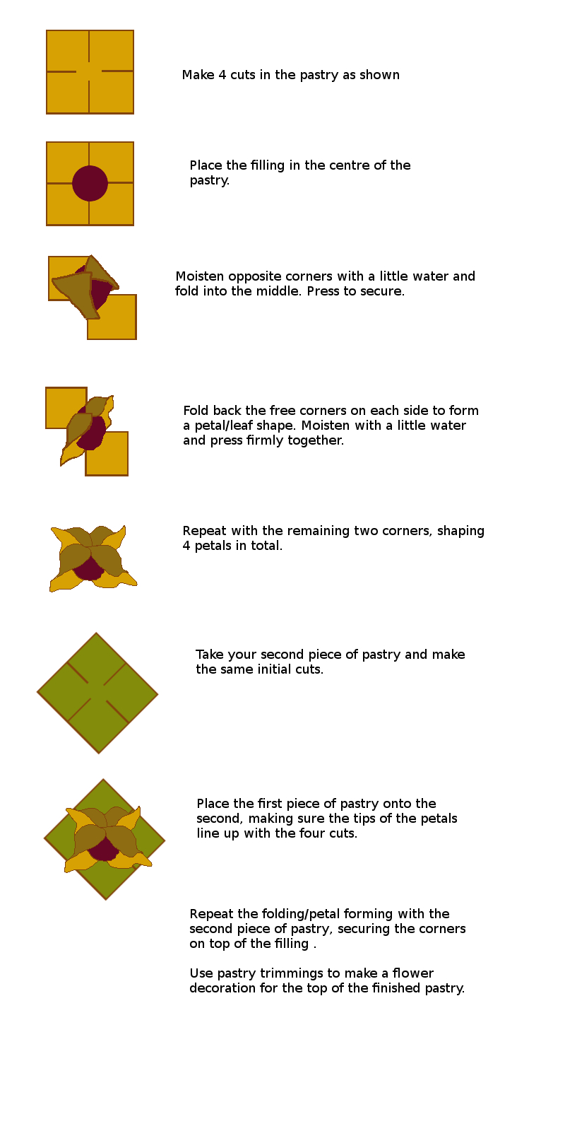 4. For each individual pie, proceed as follows: Pastry folding instructions graphic