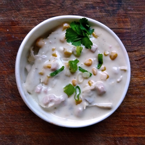 As the end of the week approaches, you might be down to your last few shreds of chicken, so a great way to make them stretch is to make a soup. There is a very basic version, and then a list of additions which you can add according to taste/necessity.