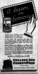 Advertisement for canned Chicken a la King, Chicago Daily Tribune, February 2nd, 1923, p5