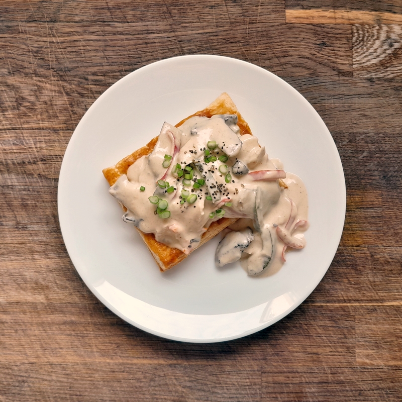 Alternative serving suggestion: Chicken a la King, served on/over a puff pastry case.