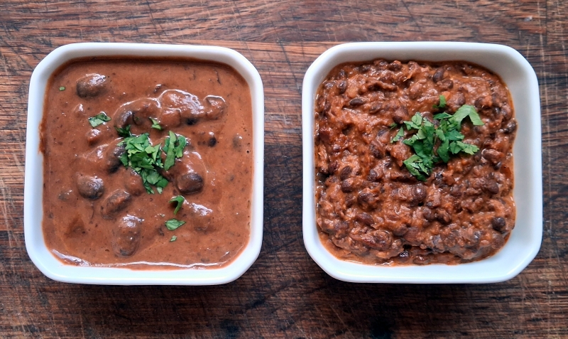 Dishoom’s House Dal with black beans (L) and black lentils (R)