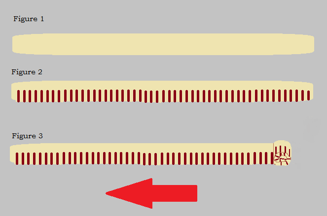 - Roll out the dough to a length of between 80-100cm, and between 5-8cm wide (Figure 1 above).