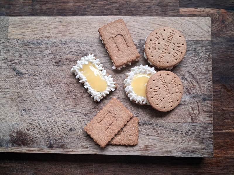- Add a second biscuit as a ‘lid’ if you like, but to be honest, if your biscuit is crisp, biting into your cheesecake ‘sandwich’, will likely squidge everything out the sides. I recommend going ‘open-faced’.