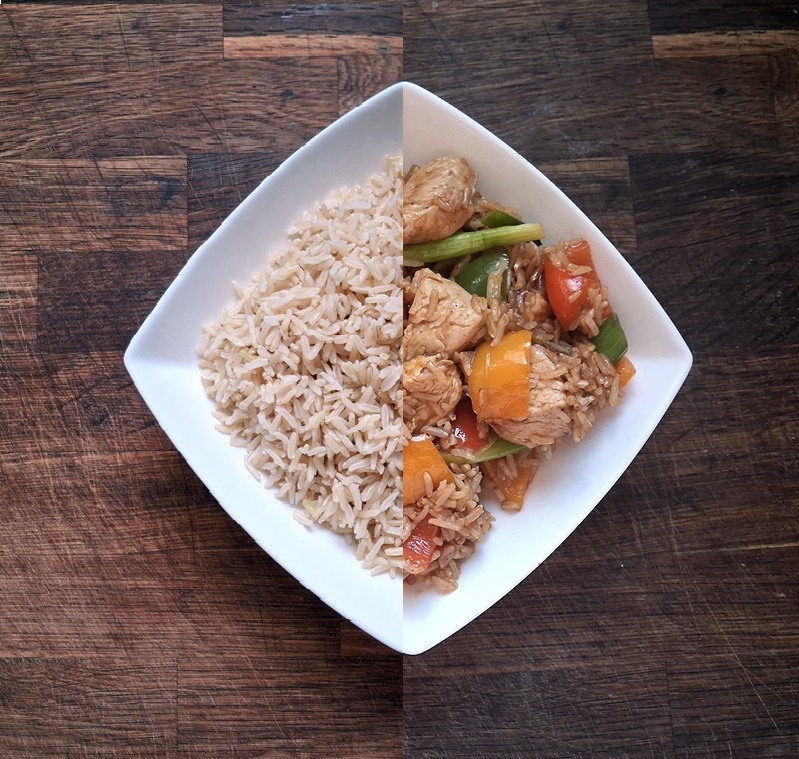 And that is it. No rinsing, no washing, no soaking. I literally pour it straight out of the bag and into the boiling water, set a timer and don’t think about it until the time goes off. Because we don’t measure either, and my recommendation is to always cook more than you need – it stores in the fridge beautifully, and then you have it ready for curries or stir fried dishes (see below) or whatever. Another bonus is the lack of steaming recommended for white rice, where after cooking, it is left in the pan, or sieve, covered with a lid or cloth, and left to steam in its own heat for 10-15 minutes in order for the grains to separate. No such Faffing About™ with brown Basmati rice: boil, drain, and boom! Each grain beautifully separate from one another, piping hot and ready to go.