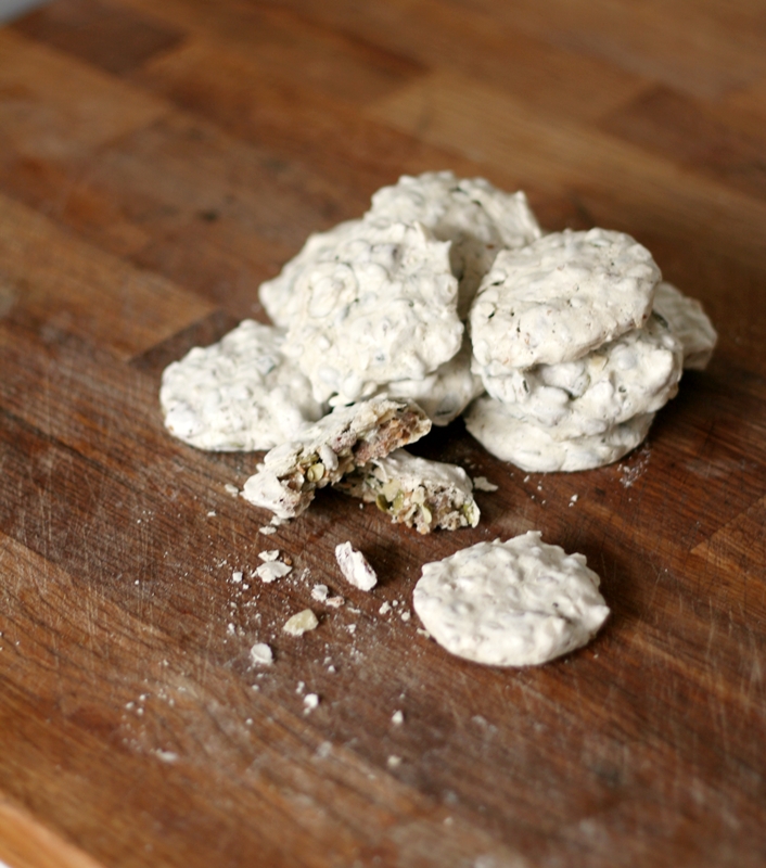- Drop the mixture onto the baking sheets in whatever size you desire, but bear in mind, the larger the diameter, the longer it will take to dry out. I used a heaped tablespoon and a small round cutter to give the biscuits an even and consistent shape.